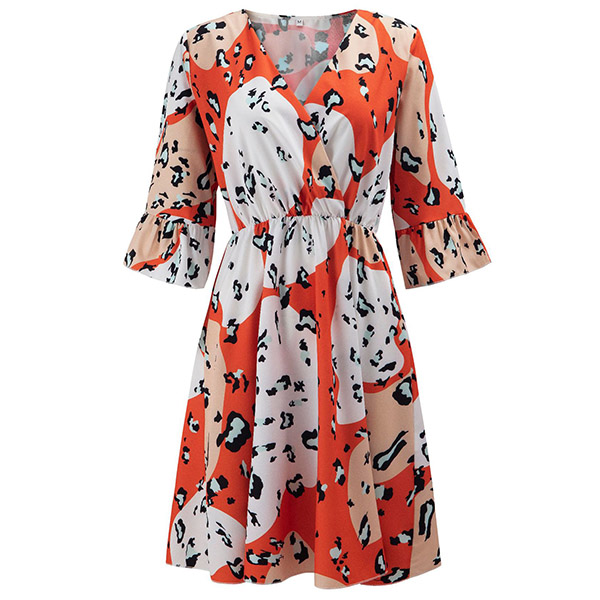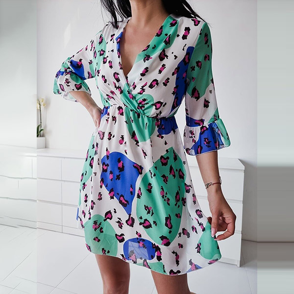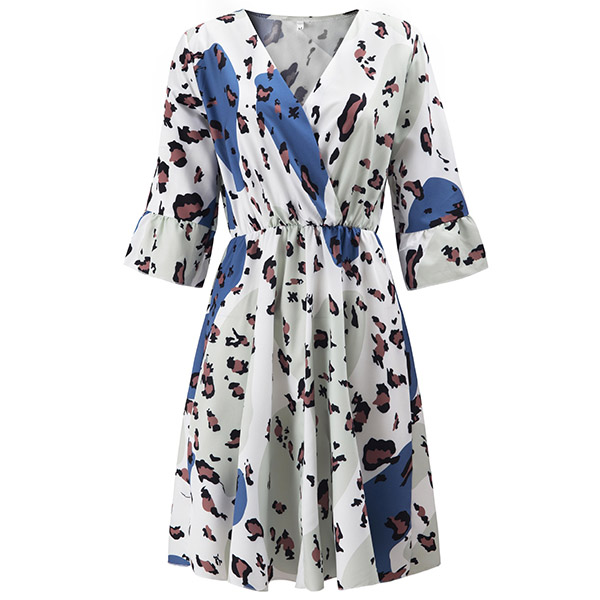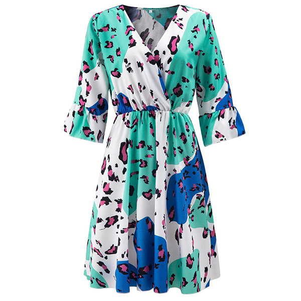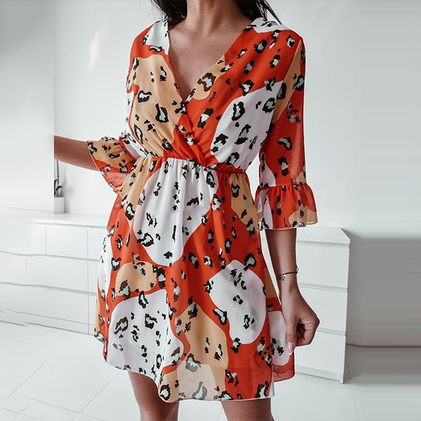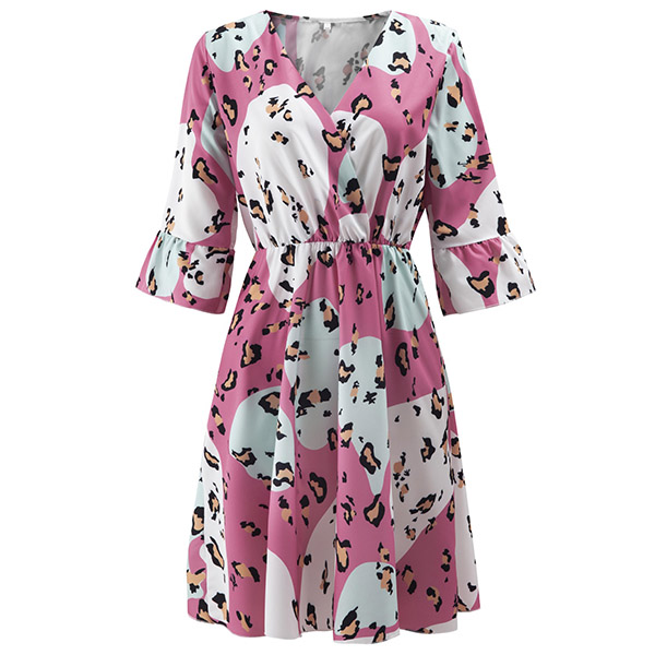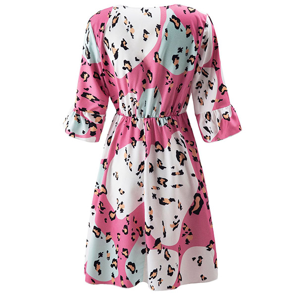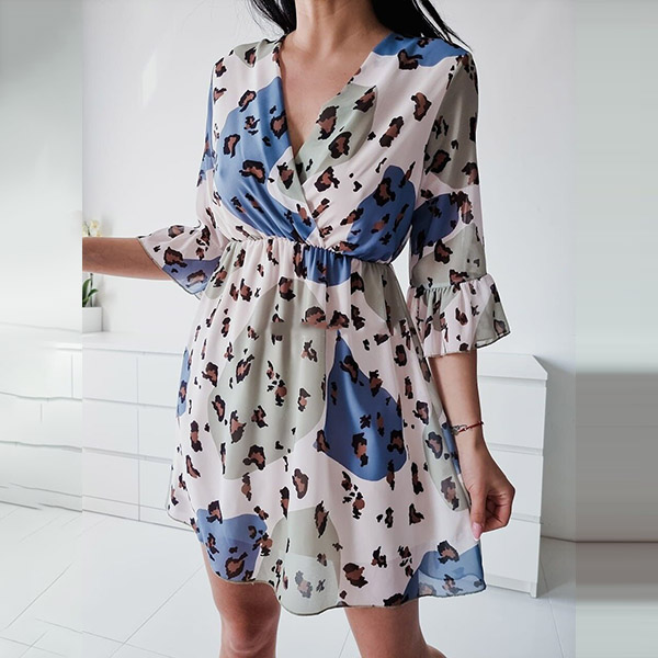 Style and sophistication come together so perfectly in this dress! It is designed with half sleeve and v-neck design,this dress is sure to offer you a comfortable day with its soft and breathable fabric. Moreover,the ruffle cuff and leopard printed details will make this piece look more eye-catching and attractive. For your daily out,this dress can be your perfect choice to express your style.