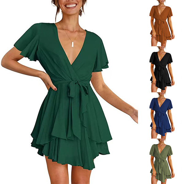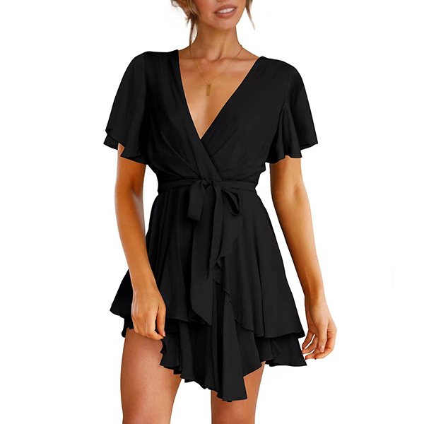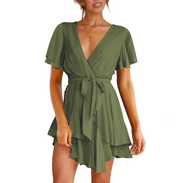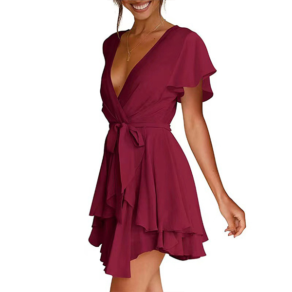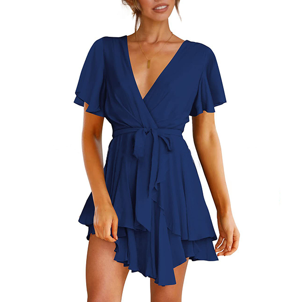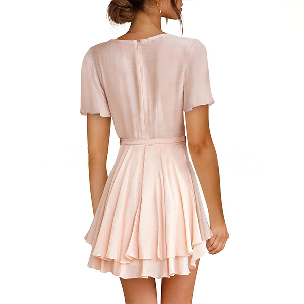 You have no need to worry about what to wear for your daytime out or night dating if you have this dress in your team. The v-neck and ruffle cuff design can lend you some sweet yet feminine sense. And the lace-up bow-knot design at the back side will add some extra charm. You just slip into this piece,then you can look beautiful enough!