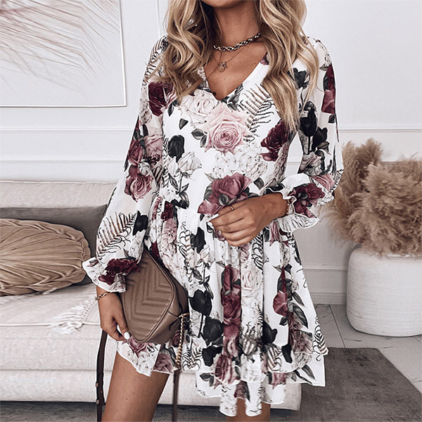 Wanna your daily look full of sweet,sassy and flirty vibes? Then this dress can be your perfect helper. Its eye-catching printed details can help you catch more eyes,while the v-neck and ruffle hem design will enhance your feminine appeal. From your daytime out to night dating,this dress can give you an easy transition.