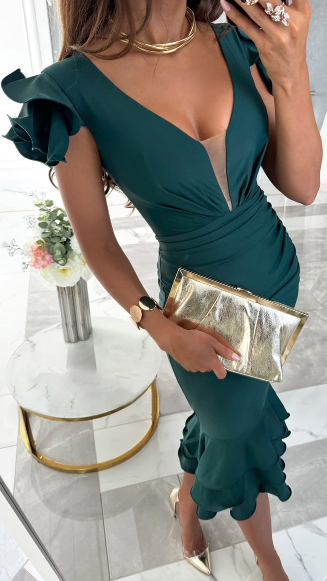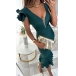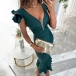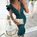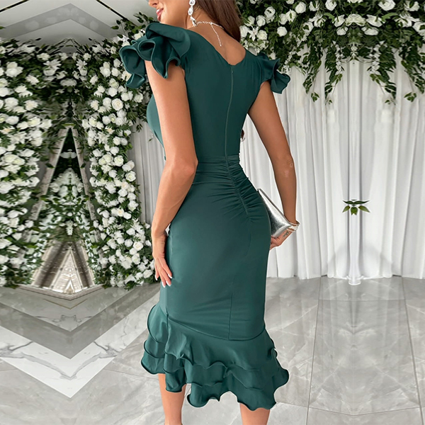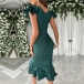Sexy V-neck Ruffled Cap Sleeve Ruched Ruffled Hemline Bodycon Dress