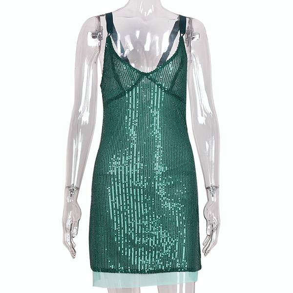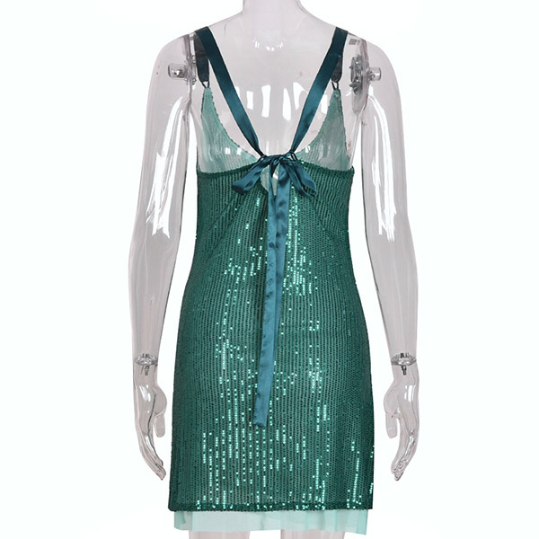 Sexy V-neck Sequined Backless Slip Dress