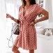 Sexy V-neck Short Sleeve Dots Printed Dress