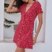 Sexy V-neck Short Sleeve Front-button Printed Dress