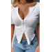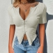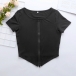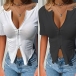 Sexy V-neck Short Sleeve Front-zipper Solid Color Slim Fit Top