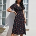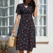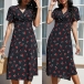 Sexy V-neck Short Sleeve High Waist Cherry Printed Dress