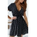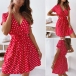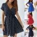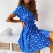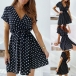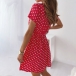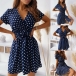 Sexy V-neck Short Sleeve High Waist Lace-up Dots Printed Dress