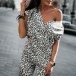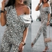 Sexy V-neck Short Sleeve High Waist Leopard Printed Jumpsuit