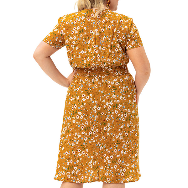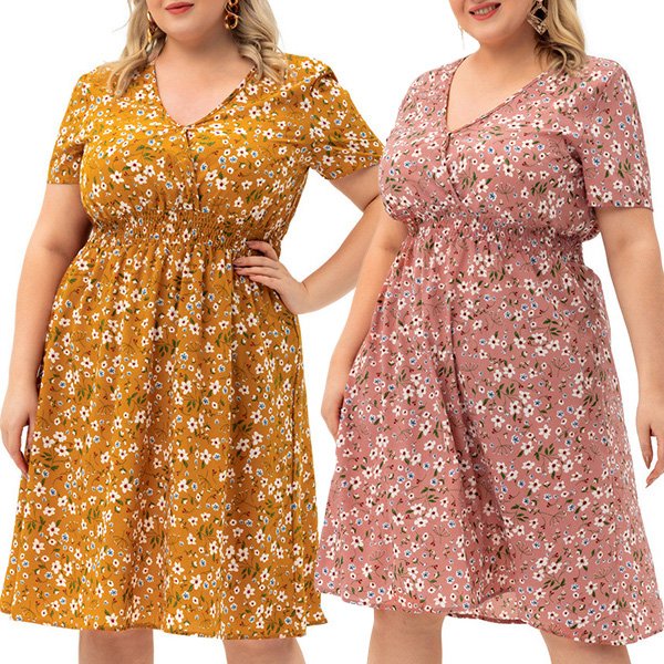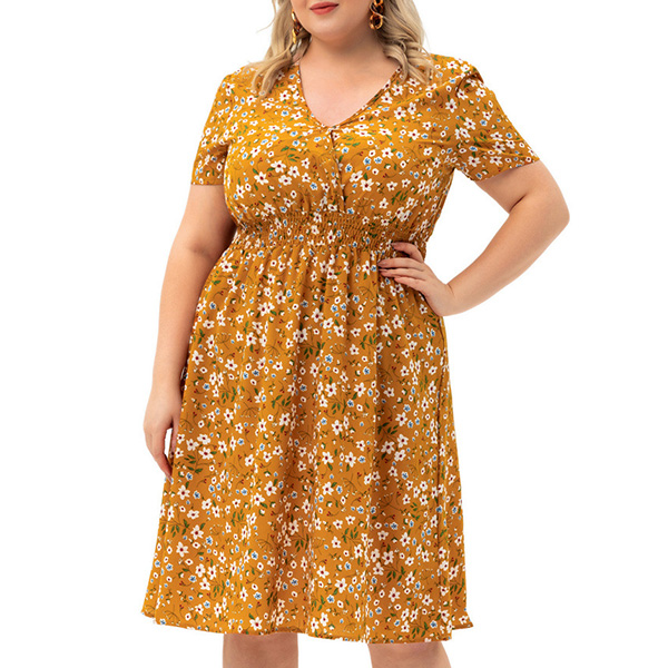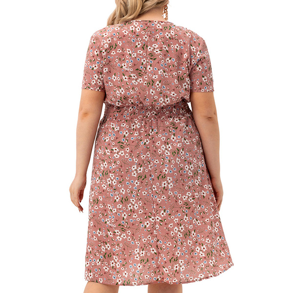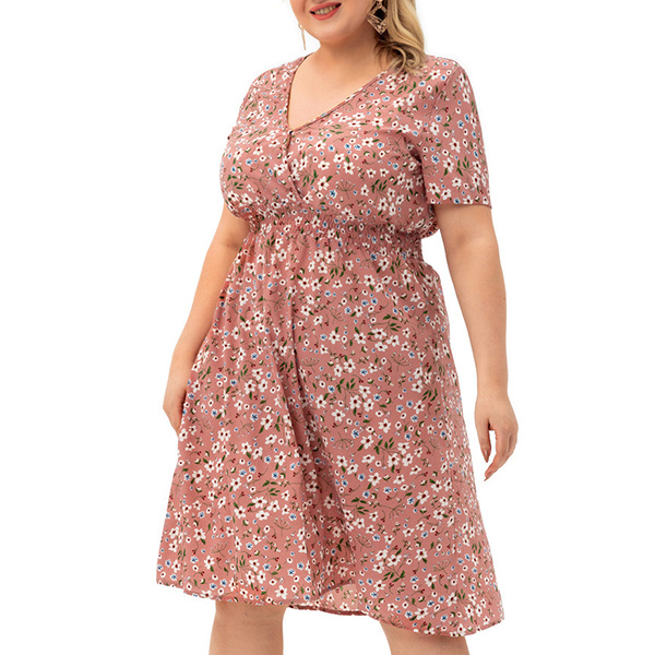 Sexy V-neck Short Sleeve High Waist Plus-size Printed Dress