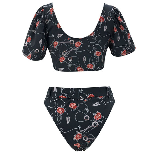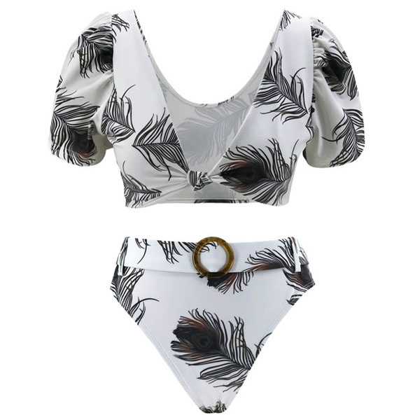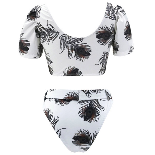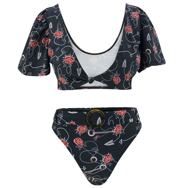 For your beach days,this cozy yet sexy bikini set would be a wise choice. Features chic printed details,including a short sleeve v-neck bikini top and a high waist bikini bottom,this bikini set can make you be the most beautiful bikini girl!