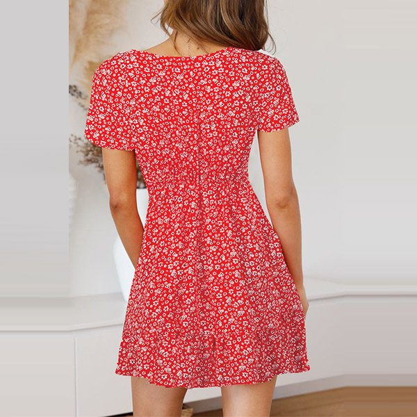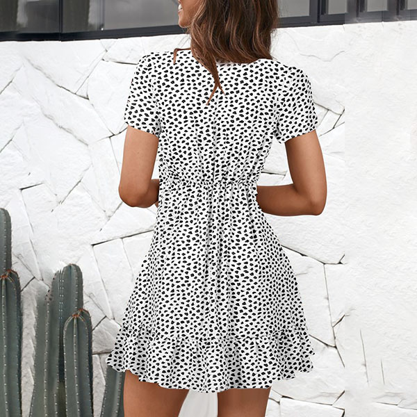 Sexy V-neck Short Sleeve High Waist Printed Dress