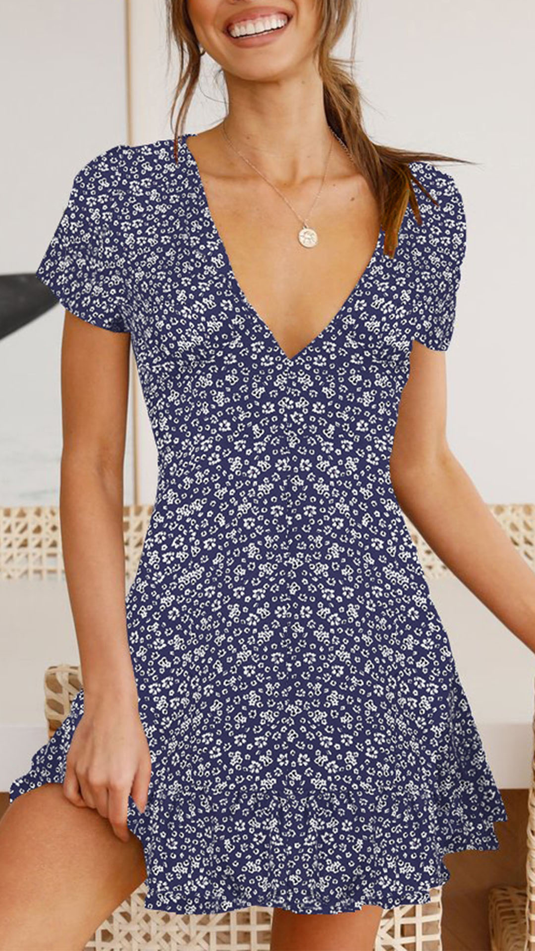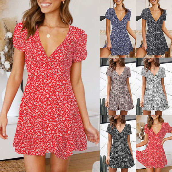 Your summer wardrobe is not complete if without a relaxed and dreamy printed dress. So we suggest you choosing this piece. It features vibrant flora print details,with short sleeve,v-neck and high waist design,this dress can make any girl look effortlessly charming and beautiful.