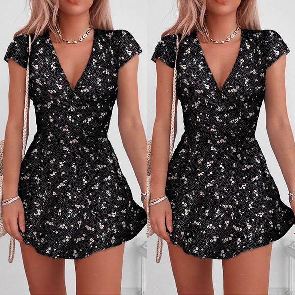 Bright up your days with a beautiful dress such as this creation. It boasts vibrant floral print details,with short sleeve,v-neck and high waist design,this dress can make you look effortlessly charming and beautiful.