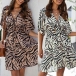 Sexy V-neck Short Sleeve High Waist Printed Dress