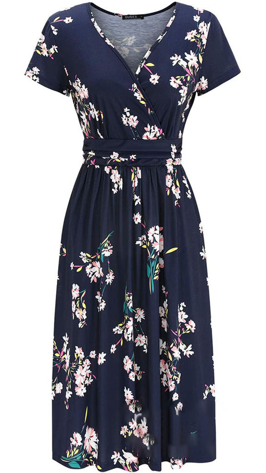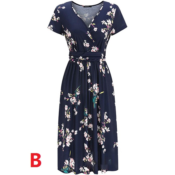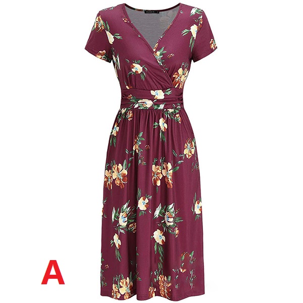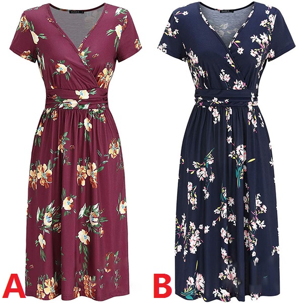 For your hot summer days,this printed dress can easily strike your mind, Its chic printed details can help you catch more eyes. Finished with short sleeve,v-neck and high waist design,this dress is sure to exude your femininity as well as showcase your slender figure.