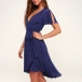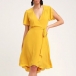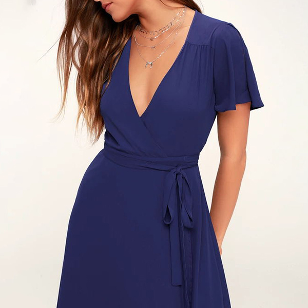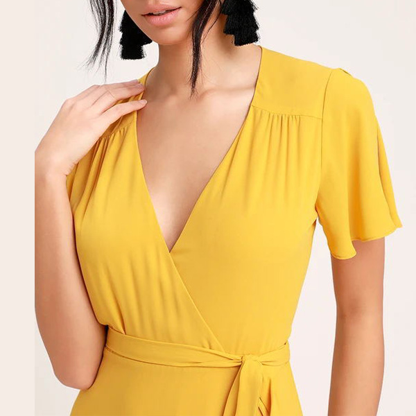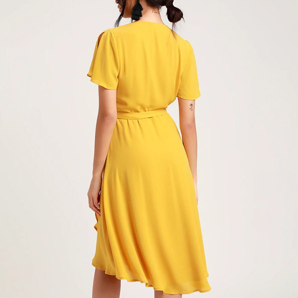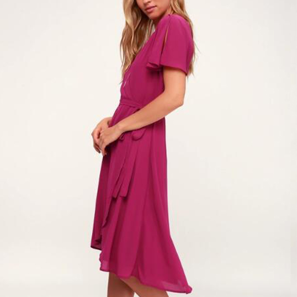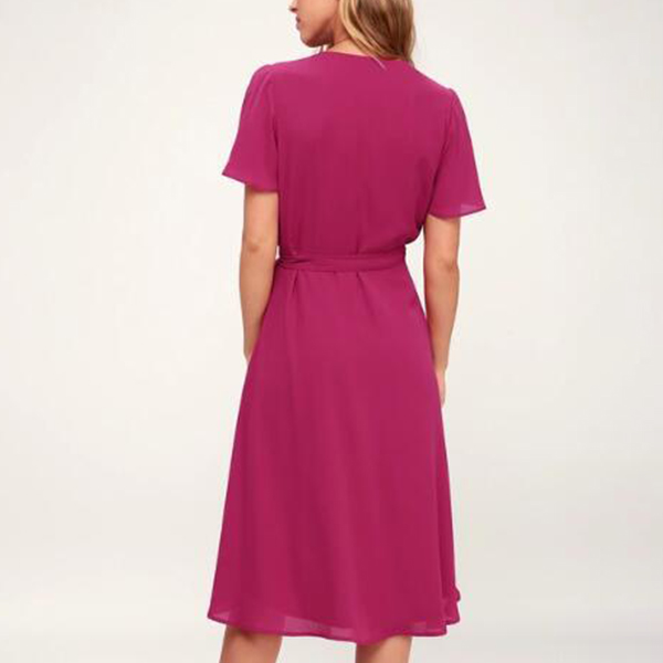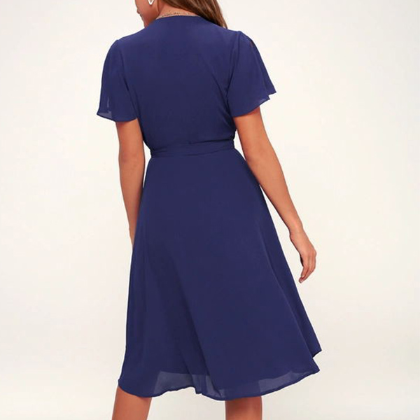 Sexy V-neck Short Sleeve High Waist Solid Color Dress