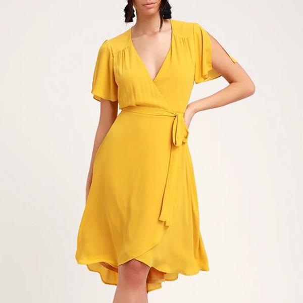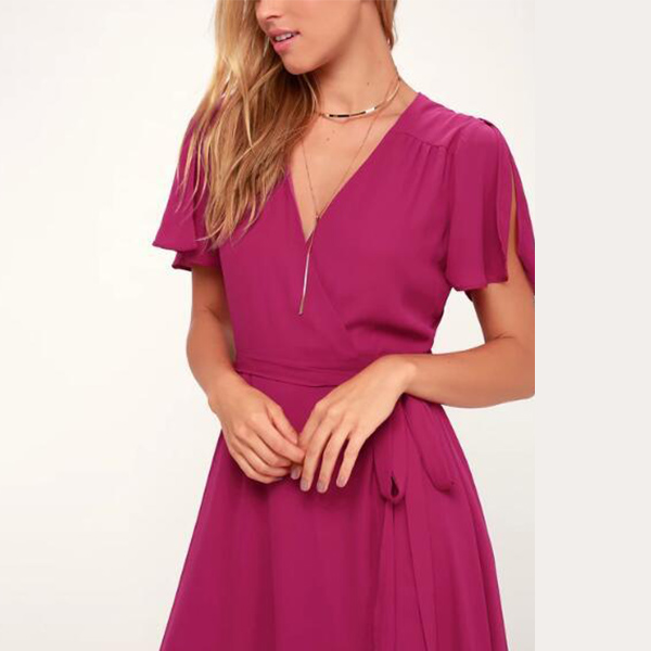 Your wardrobe will feel new and refreshing with shirt dress! Solid color tone design makes it look elegant and generous,while the slit short sleeve and v-neck design will enhance your feminine appeal. From your daytime out to night dating,this delicate dress can give you a perfect transition.