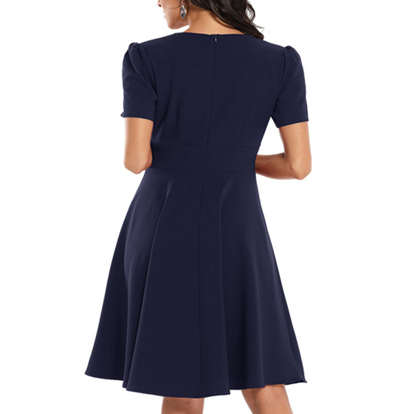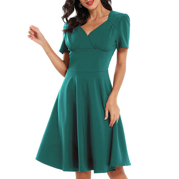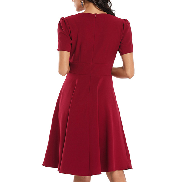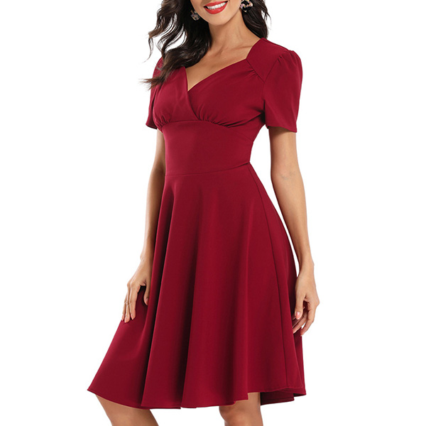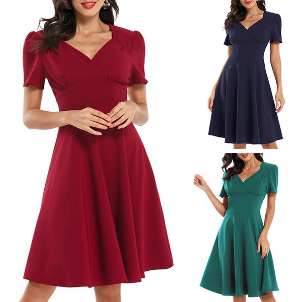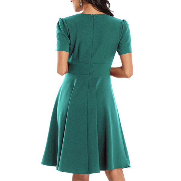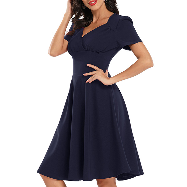 Every girl needs a dress which can take her to different occasions,that's we we suggest you this piece! It boasts a solid color,finished with short sleeve,v-neck and high waist design,this dress not only can showcase your slender figure,but also can portray your elegant and charming image. So why not introduce it to your wardrobe?