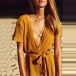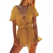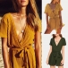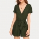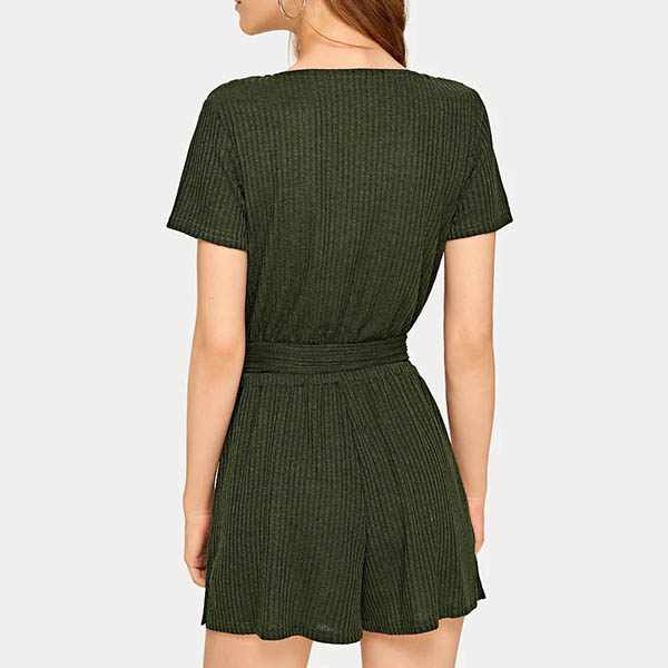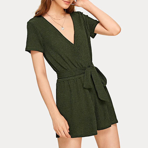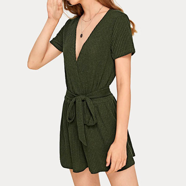 Sexy V-neck Short Sleeve High Waist Solid Color Romper