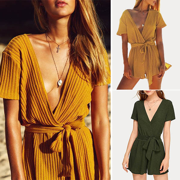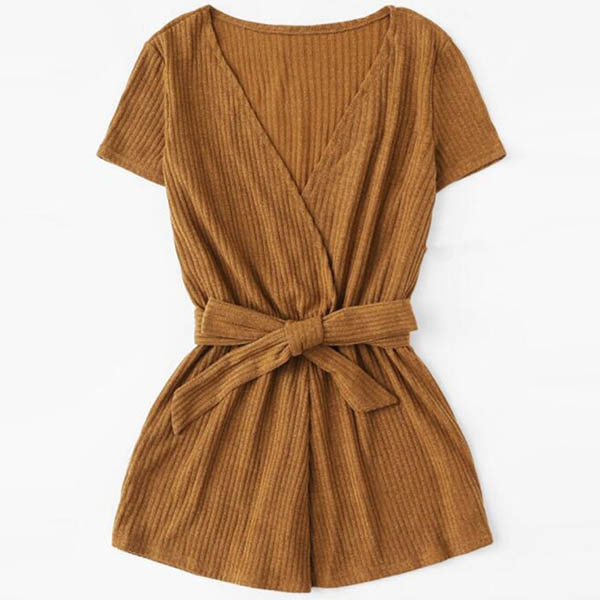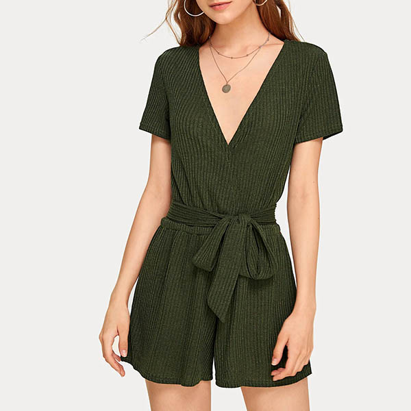 Embrace the warmth of a sunny weekend with this romper. Solid color style,this high waist and waist strap design can better highlight your figure,while the v-neck design will enhance your feminine appeal. Your style and charm can have a boost when you don this little piece.