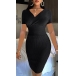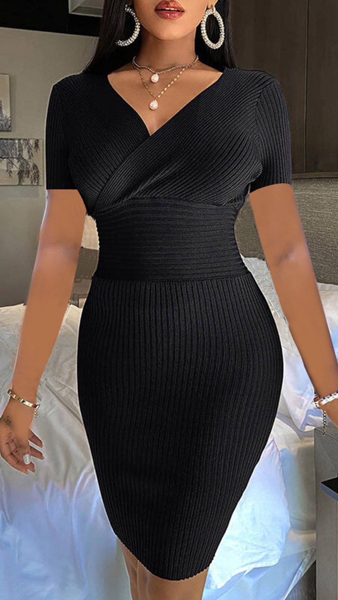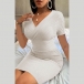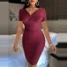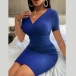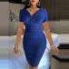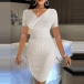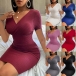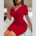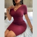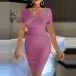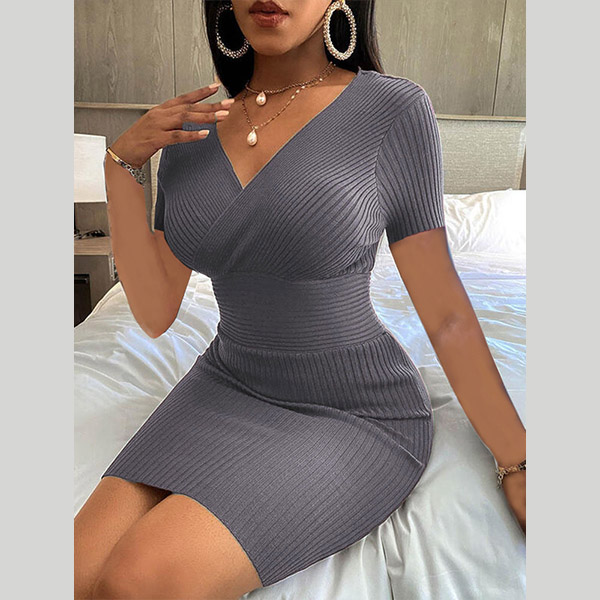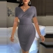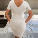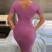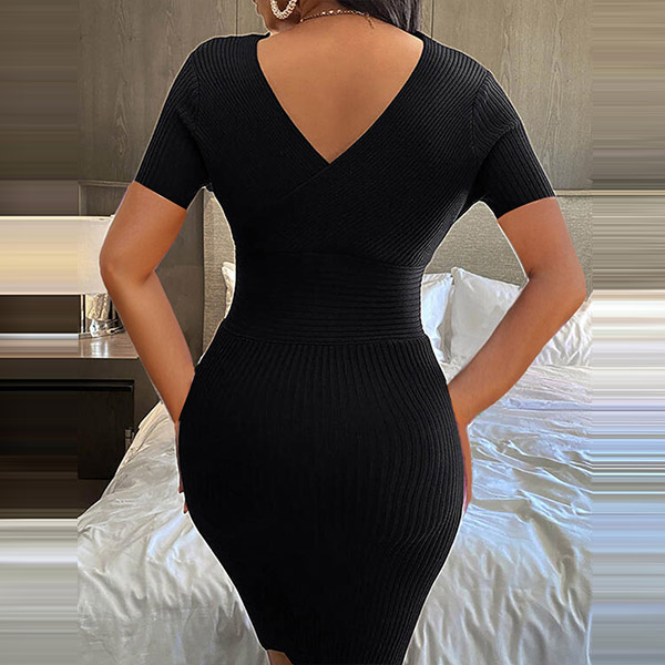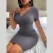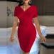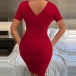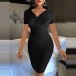 Sexy V-neck Short Sleeve High Waist Solid Color Slim Fit Dress