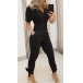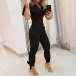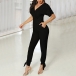 Sexy V-neck Short Sleeve High Waist Solid Color Slim Fit Jumpsuit
