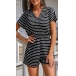 Sexy V-neck Short Sleeve High Waist Striped Printed Romper