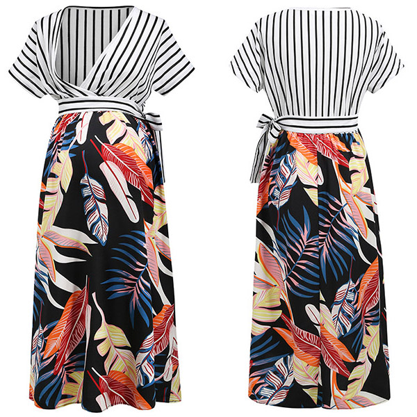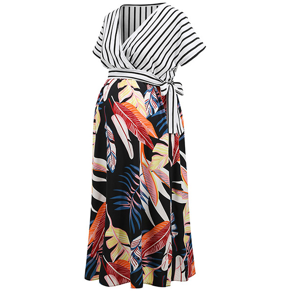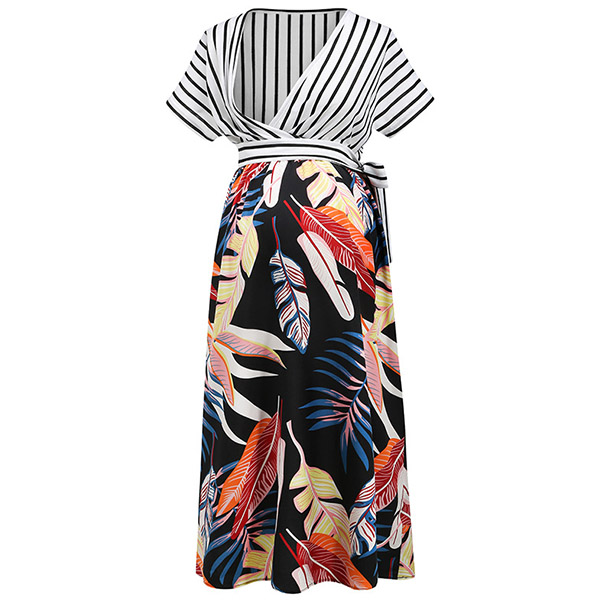 For the pregnant women,this dress is a good chance for them to express their beauty and charm. Combines of stripe and colorful printed details,which will make this piece look more eye-catching. Finished with short sleeve,v-neck and high waist design,this dress also can ensure the comfy with its soft and breathable fabric. You can have a wonderful pregnant time in this dress.