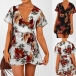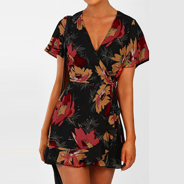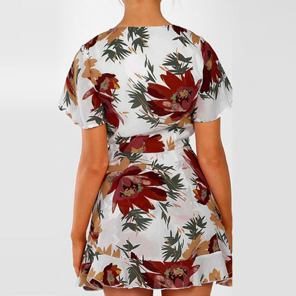 Sexy V-neck Short Sleeve Irregular Ruffle Hem Printed Dress