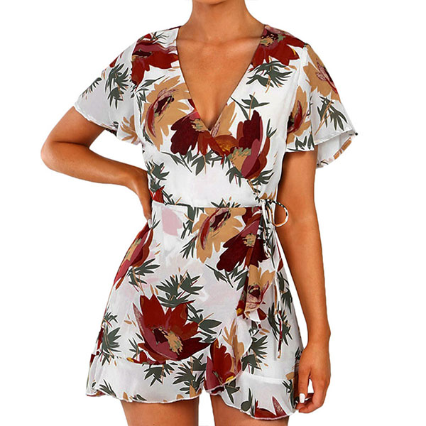 Make your summer wardrobe more complete by adding this printed dress. It is finished with short sleeve,v-neck and an irregular ruffle hem,which can easily enhance your style and charm. No matter for your night dating or weekend out or holiday trips,this dress can give you a sassy and beautiful look.