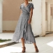 Wanna a beautiful dating look? Then you can just slip into this printed dress. It is finished with short sleeve,v-neck and an irregular ruffle hem,this dress can make you look effortlessly charming and beautiful. Dress it up with your favourite sandals for a sassy look.