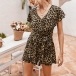 Sexy V-neck Short Sleeve Leopard Printed Romper
