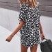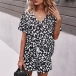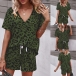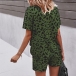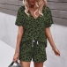 Sexy V-neck Short Sleeve Leopard Printed T-shirt + Shorts Two-piece Set