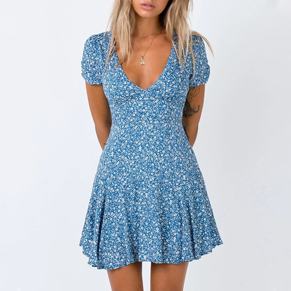Make your summer wardrobe more complete by adding this printed dress. Its vibrant floral print details can help you gain more eyes,while the v-neck design can enhance your feminine appeal. Just slip into this beautiful dress to express your summer style.