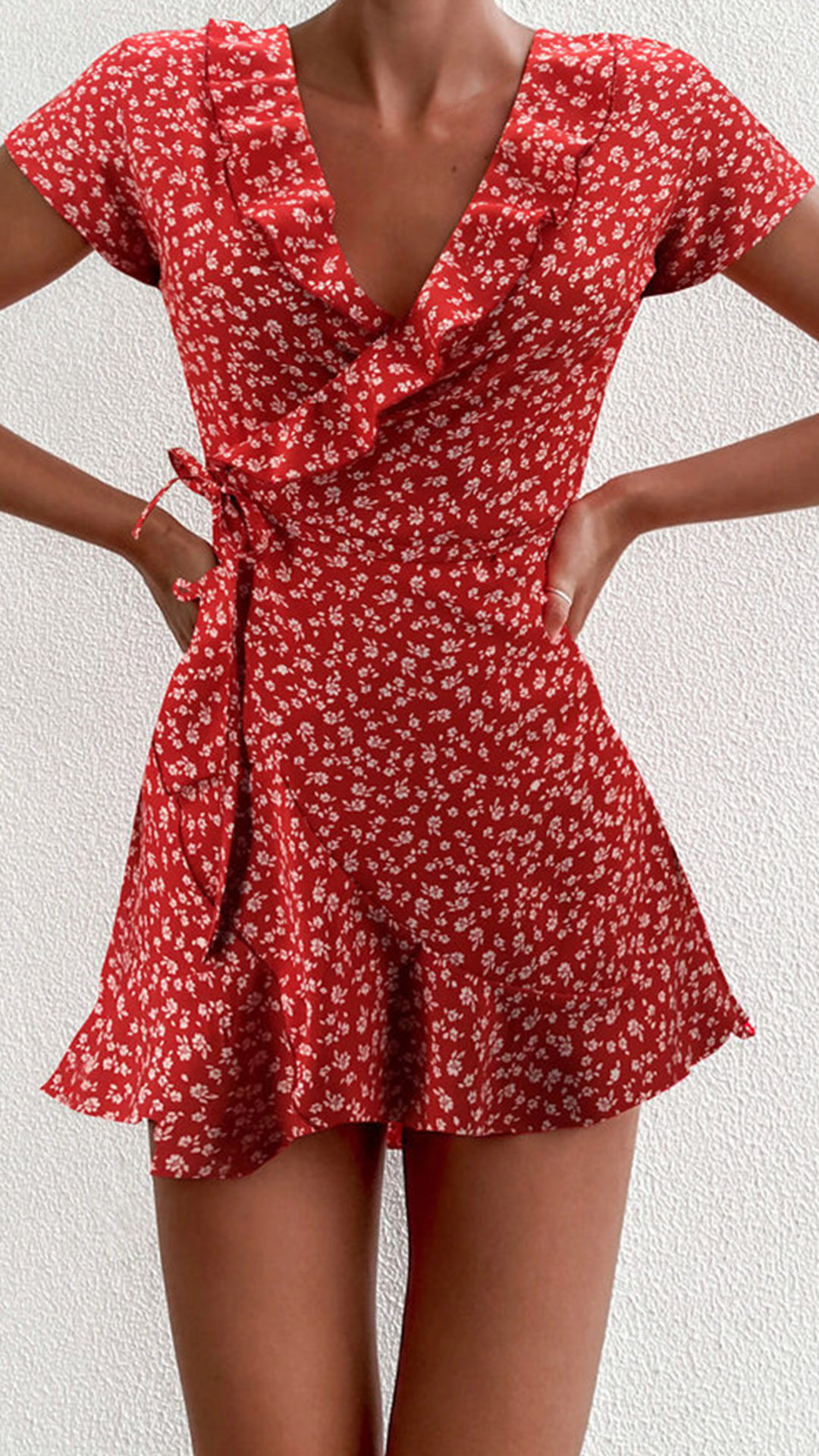 A dreamy, relaxed piece perfect for beach days, tropical getaways, or for just channeling an easy going vacation state of mind, this dress is the perfect choice. Features vibrant floral print details,which can offer you a more eye-catching look,while the v-neck and ruffle hem design will make you look sweet yet flirty.