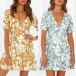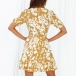 Sexy V-neck Short Sleeve Ruffle Hem Slim Fit Printed Dress