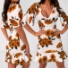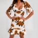 Sexy V-neck Short Sleeve Ruffle Hem Slim Fit Printed Dress