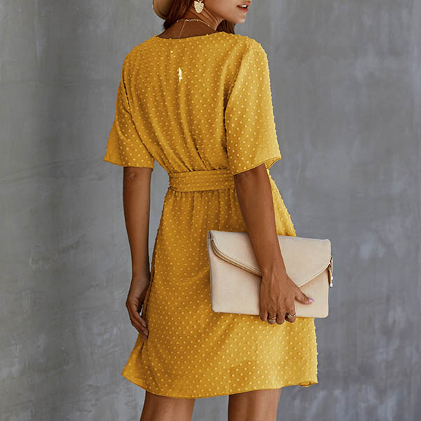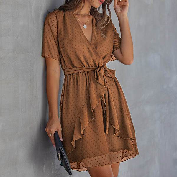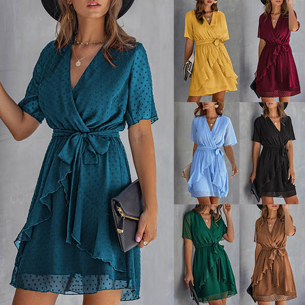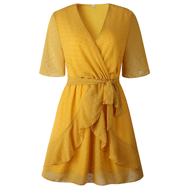 Embrace the warmth of a sunny weekend with a delightfully dress such as this creation. It is designed with short sleeve,v-neck and ruffle design,sexy yet flirty. From your daytime out to night dating,this dress can give you a perfect transition.