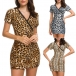 Sexy V-neck Short Sleeve Slim Fit Leopard Printed Dress