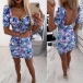 Sexy V-neck Short Sleeve Slim Fit Printed Dress