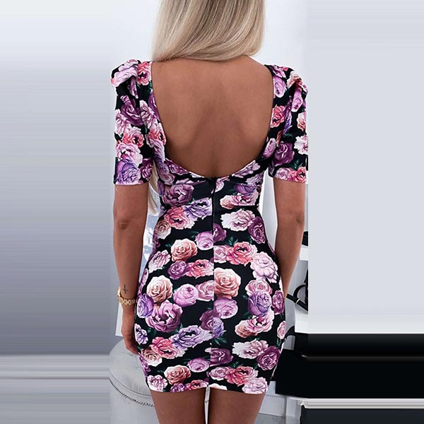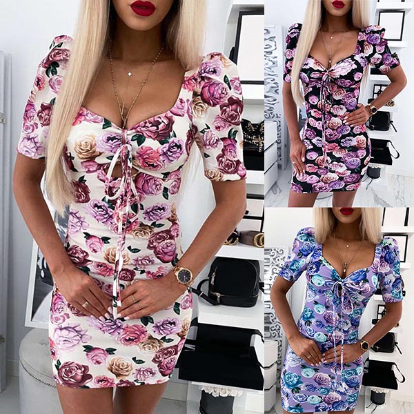 Outfitted with the features of sexy and charming and rendered into a more flattering and feminine design, this dress is the key to an effortlessly chic and sultry look. The vibrant floral print details make this piece look so eye-catching. Finished with short sleeve,v-neck and a fit silhouette,this dress can be your secret weapon to express your beauty and charm.