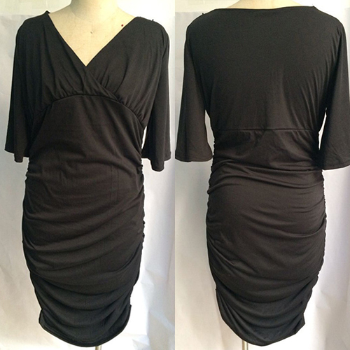 solid color style,with v-neck,short sleeve and a sleek silhouette. If you wanna look more eye-catching,