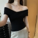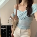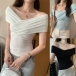 Sexy V-neck Short Sleeve Solid Color T-shirt