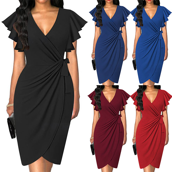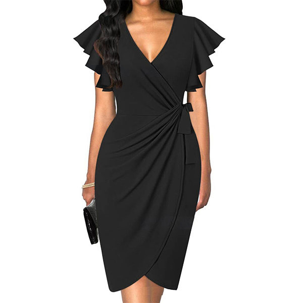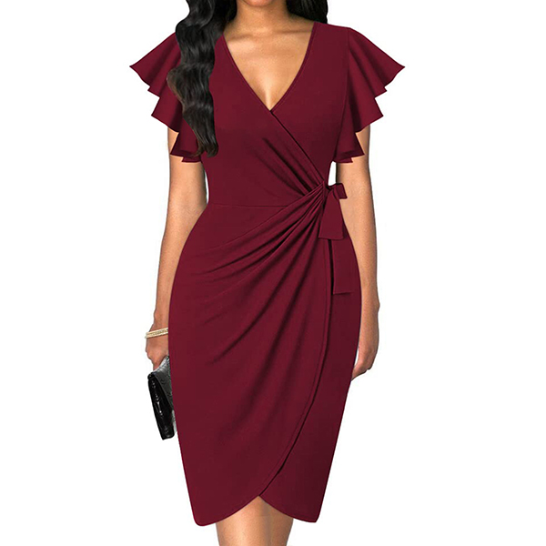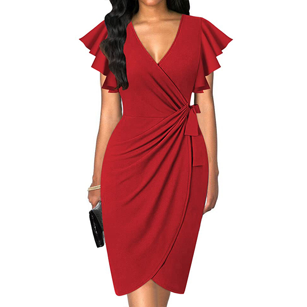 Sexy V-neck Short Sleeve Solid Color Twisted Slim Fit Dress