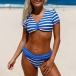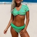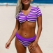 Sexy V-neck Short Sleeve Striped Bikini Set