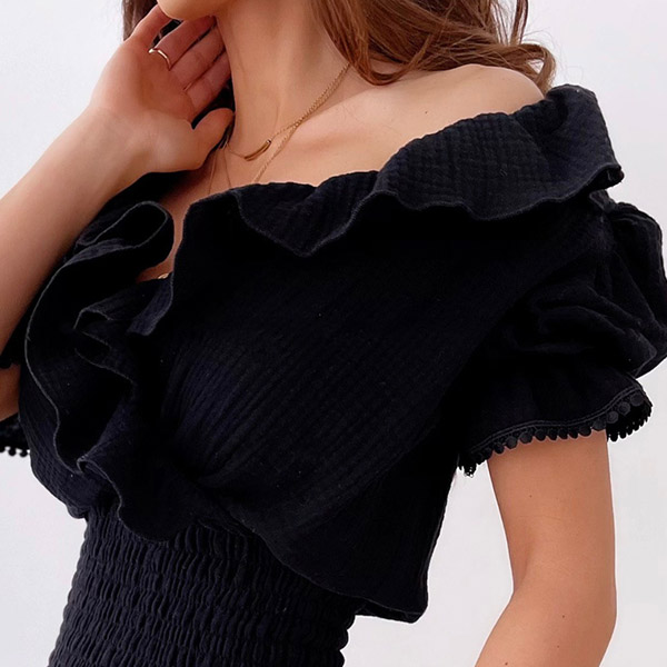 When you have a night event,then you can trust in this black dress to help you gain more eyes. The v-neck and ruffle design can enhance your feminine appeal. Finished with short sleeve and high waist design,this dress also can showcase your slender figure. Dress it up with your sexy heels and elegant clutch,you can look elegant and charming enough!