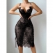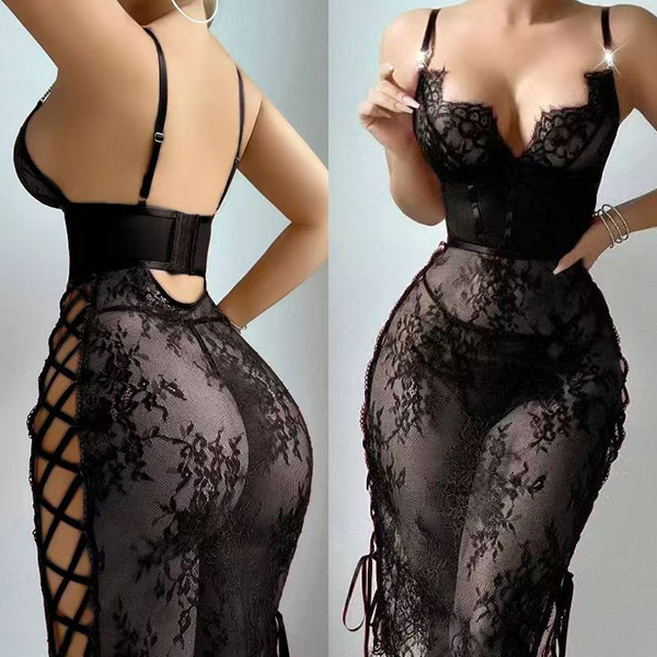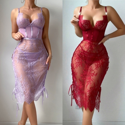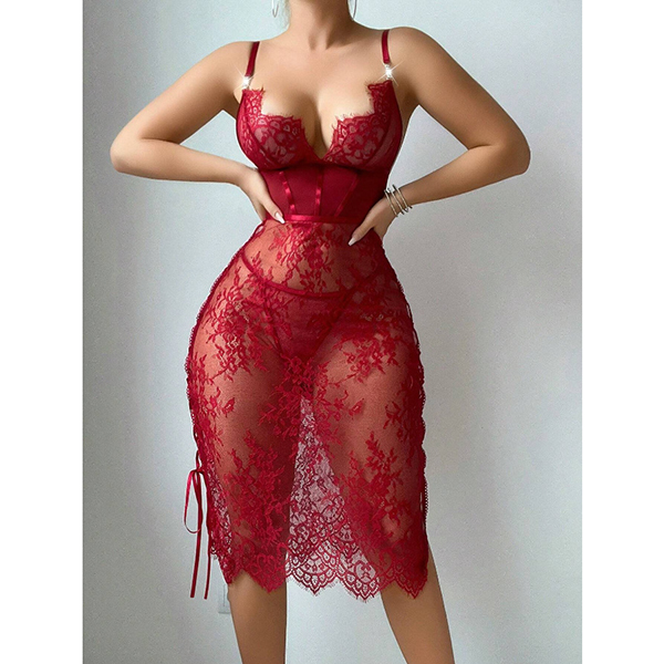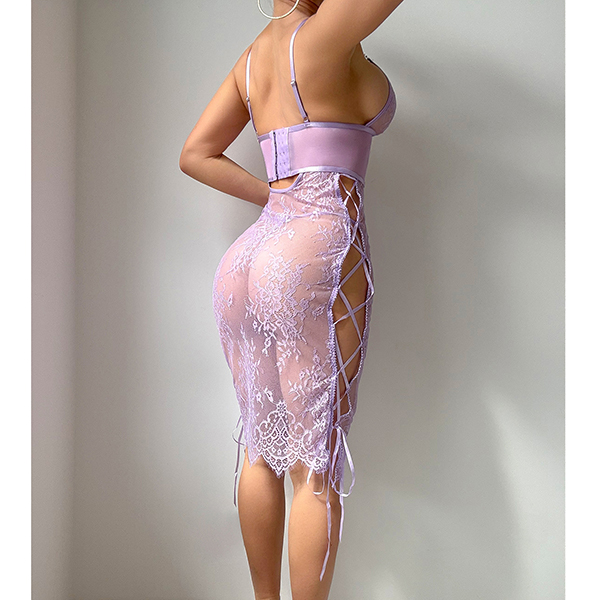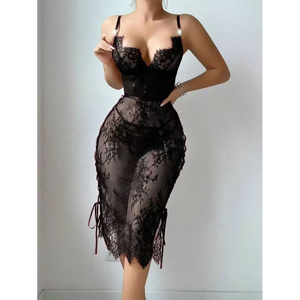 Sexy V-neck Side Lace-up Semi-through Nightwear Dress