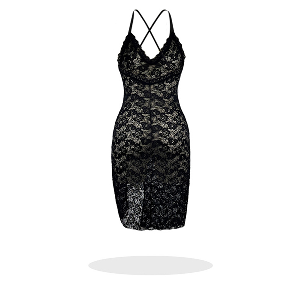 Sexy V-neck Side Slit Pearl Cross-criss Backless Nightwear Dress