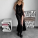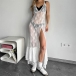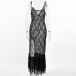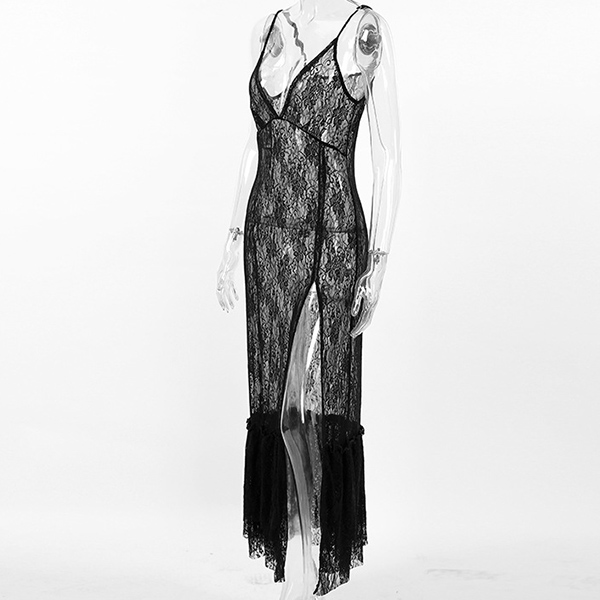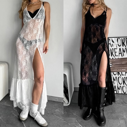 Sexy V-neck Side Slit Semi-through Lace Dress