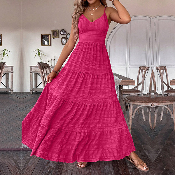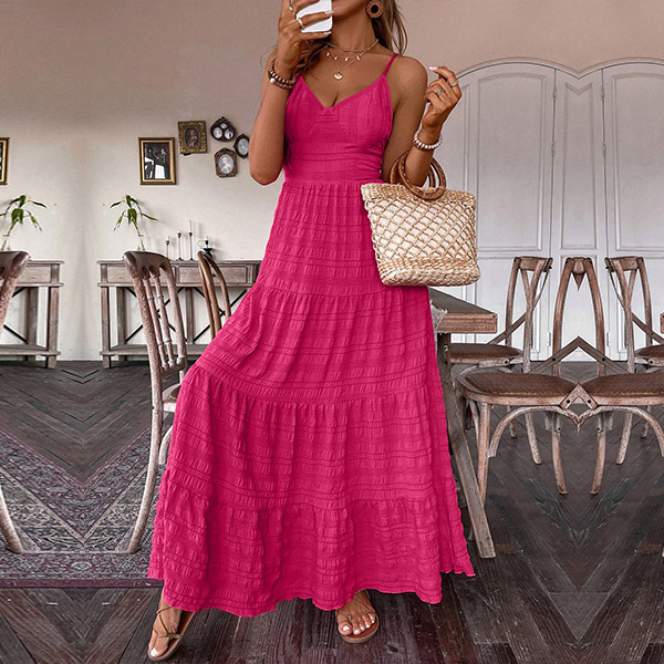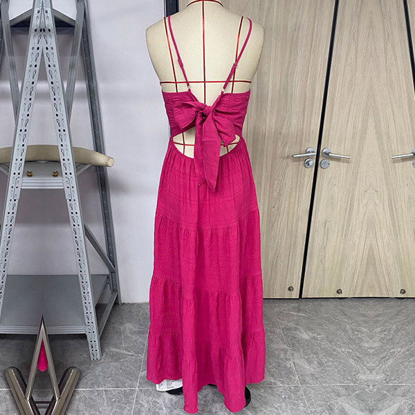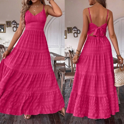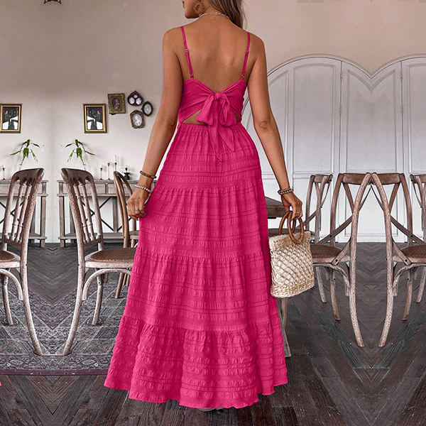 Wow, this maxi dress has a seriously sultry, show-stopping look. It features a sexy v-neckline, backless silhouette with self-tie bowknot takes the sex appeal up a serious notch.You could easily dress this up with heels and statement jewelry for a night out. Or keep it more casual with flat sandals and minimal accessories for a breezy, summery look.