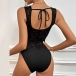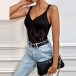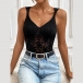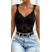 This black bodysuit features a V-neckline, sleeveless design, backless detail, and delicate lace fabric for a seductive and feminine look. Pair it with high-waisted pants or a skirt for a chic and sexy look that is sure to make you stand out.